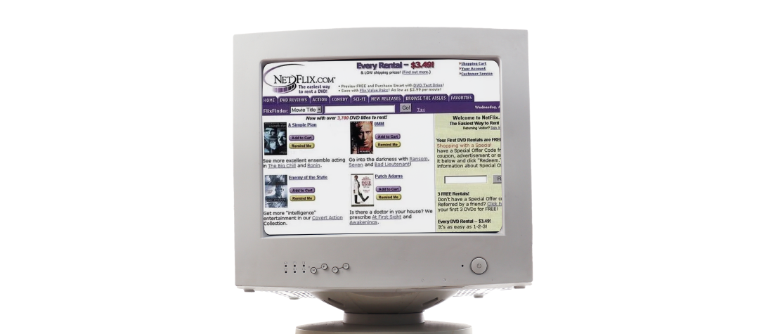 Let’s travel back to ‘97 (a major throwback) when Netflix launched as a mail-order DVD rental company. Renters would browse and order films through their website, and Netflix would post DVDs to customers' doors1. After renters had finished viewing the films, they would post them back to Netflix. At the time, each rental was $4 + $2 for shipping2, but things changed in 1999 when the company switched to a subscriber-based model, giving users the chance to keep DVDs for as long as they liked1.